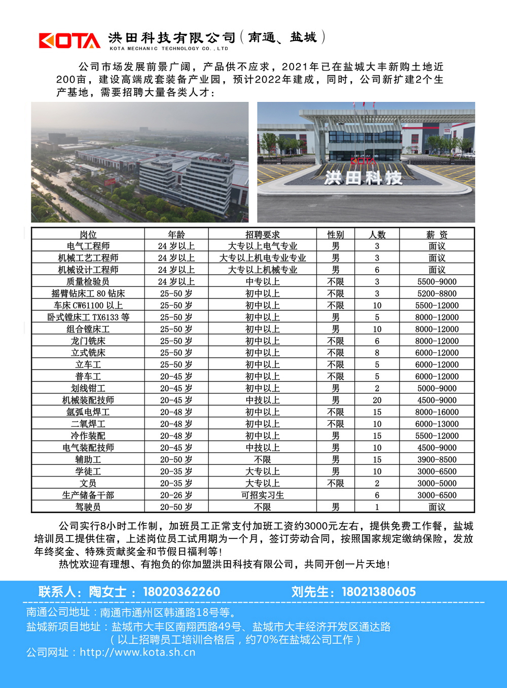 同社には幅広い市場開発の見通しがあり、その製品は不足しています。 2021年に、ヤンチェン州ダフェンに200エーカーの土地を購入して、2022年に完成する予定のハイエンドの完全な機器工業団地を建設しました。同時に、同社は2つの新しい生産ベースを拡大し、さまざまな種類の多数の才能を募集する必要があります。